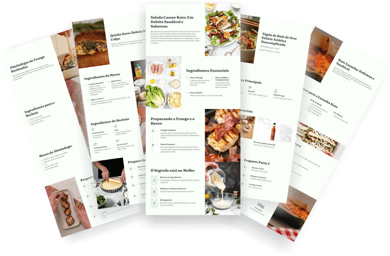 Cada receita é rica em sabor e projetada para ajudar você a manter seu corpo em cetose de forma prática e deliciosa. Após a compra, você terá acesso completo a todas as receitas, incluindo vídeos detalhados e PDFs para facilitar o preparo no dia a dia.